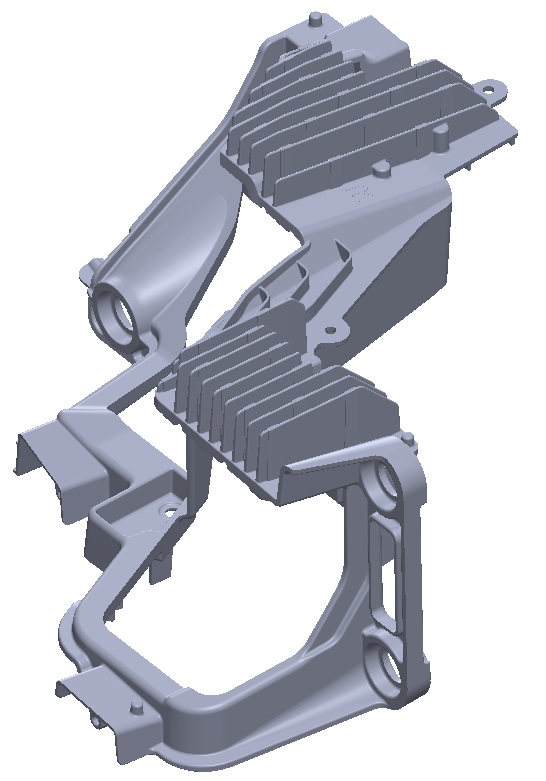 The product was prototyped as a plastic assembly with die cast heat sinks. The part combines the assembly in a complete die casting.